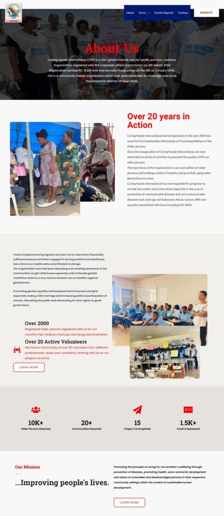 Caring Hands International had a history of impactful work dating back to 2004, but their online presence was limited to an outdated blog. They lacked a professional website to showcase their full project history, making it difficult to attract new donors and prove their long-term credibility to the world. They needed a digital home that could honor their past and fuel their future.