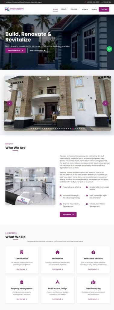 ProjectScope Construction and Renovation LTD is a forward-thinking real estate and construction firm operating across borders to deliver precise, reliable, and high-value solutions in land development, property services, and structural engineering.